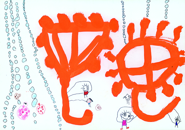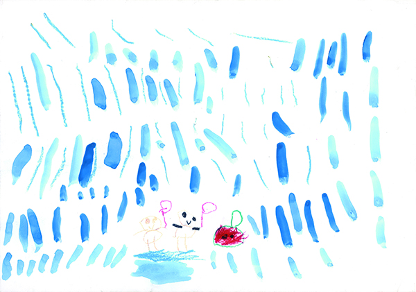 美育文化協会賞 「みんなで雨やどり たのしいね」 大賀 想來 4歳 岡山県