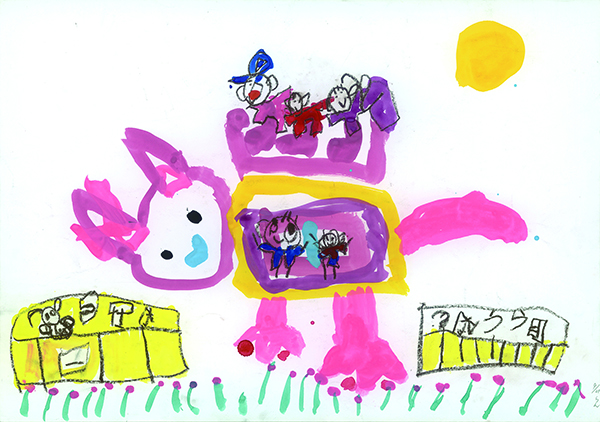 日本美術教育連合賞 「猫ちゃんバスでお買い物に行きたいな」 嶋津 蘭音 5歳 山口県